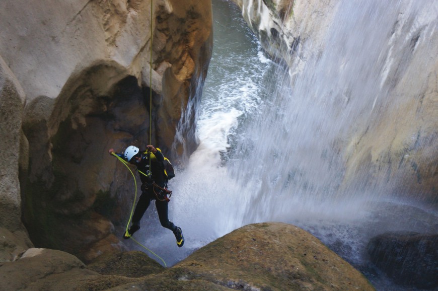 Γεμάτη φαράγγια, δάση, νερά, καταρράκτες. Όλα αυτά μαζί στο ίδιο σκηνικό. Δένεσαι με ένα σχοινί και κατεβαίνεις στα φαράγγια, χώνεσαι μέσα στους καταρράκτες, πηδάς από ψηλά στις βάθρες (στις λιμνούλες με τα κρυστάλλινα νερά). Ο εξοπλισμός και οι γνώσεις γι’ αυτήν τη βουτιά στη μαγεία που λέγεται canyoning στη Σαμοθράκη είναι απλή υπόθεση: υπάρχουν ειδικευμένες εταιρείες που σου παρέχουν ό,τι χρειάζεσαι. Μετά, τίποτα δεν θα είναι όπως πριν.