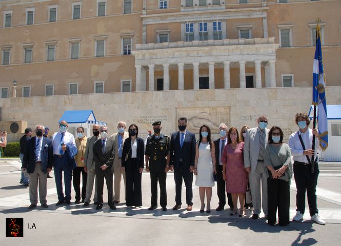 Ακολούθησε κατάθεση στεφάνου στο Μνημείο του Αγνώστου Στρατιώτη στο Σύνταγμα.