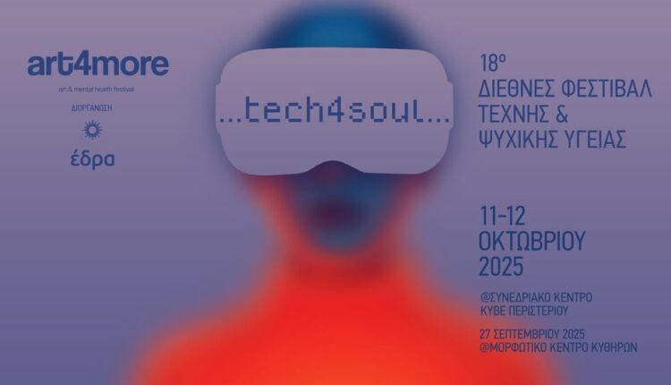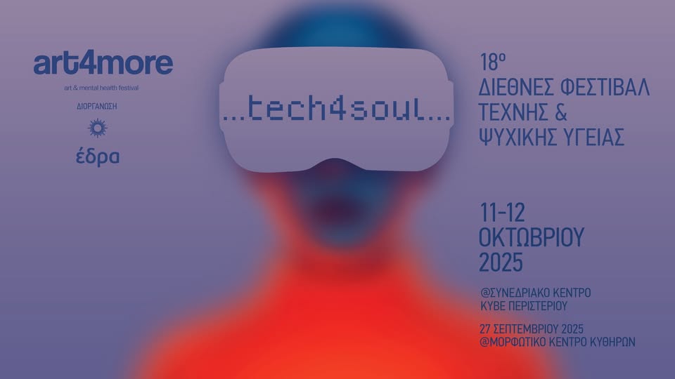 Το ART4MORE, το διεθνές φεστιβάλ που εδώ και 18 χρόνια συνδέει την Τέχνη με την Ψυχική Υγεία, επιστρέφει το 2025 με θέμα «Tech4Soul: Τέχνη, Τεχνολογία & Ψυχική Υγεία», ανοίγοντας ένα γόνιμο διάλογο γύρω από τον ρόλο της τεχνολογίας στην τέχνη, την ψυχική ευεξία και την ανθρώπινη εμπειρία.