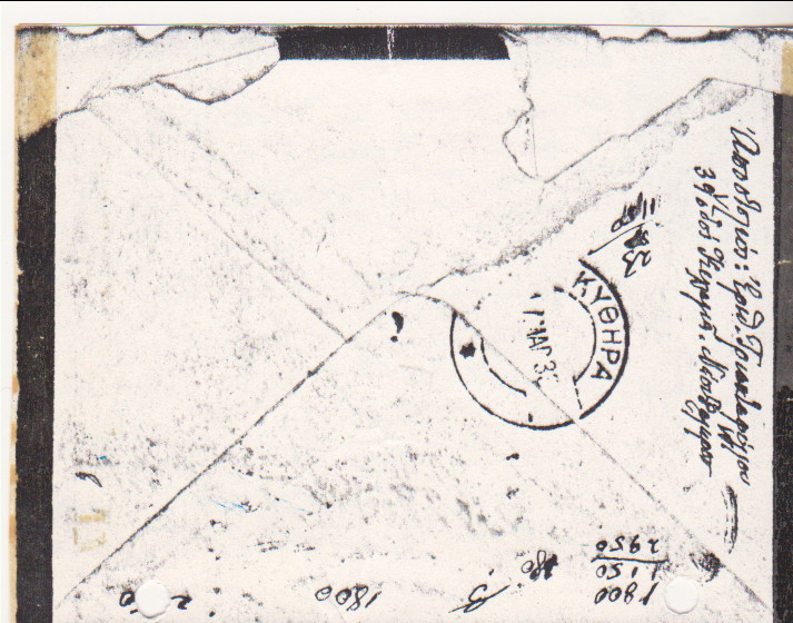 1933. Η Εριθέλγη Τριανταφύλλου (Ραπτάκη), μητέρα του Αττίκ, γράφει στα Κύθηρα μετά την πτώχευση της οικογένειας