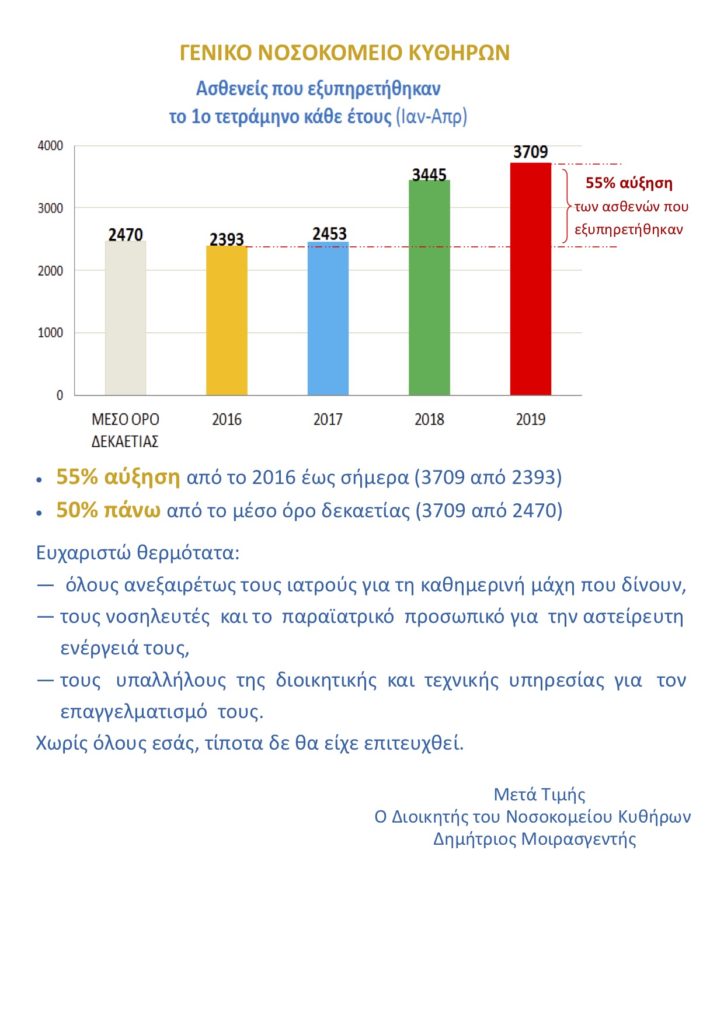50% αύξηση των ασθενών που εξυπηρετήθηκαν στο Νοσοκομείο Κυθήρων (στοιχεία 1ου τετραμήνου κάθε έτους)