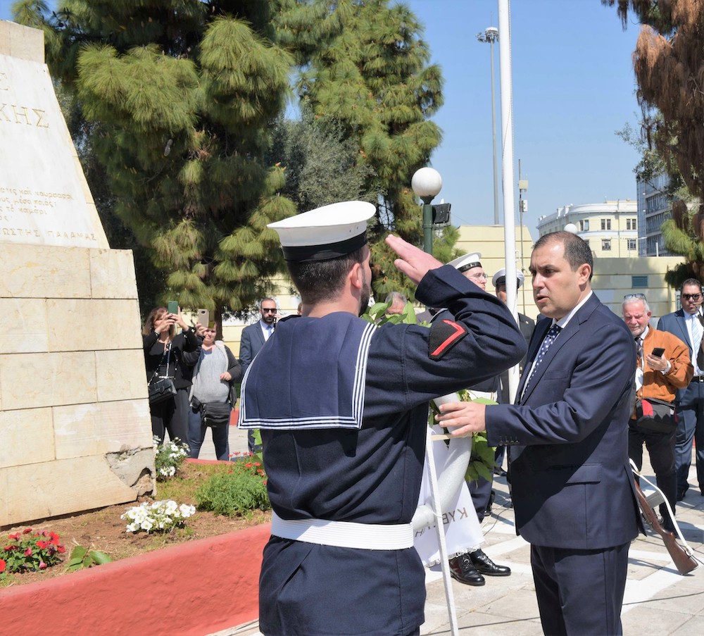 Ο Υφυπουργός Ναυτιλίας και Νησιωτικής Πολιτικής και Βουλευτής ΝΔ Α’ Πειραιώς και Νήσων, κ. Κώστας Κατσαφάδος, εκπροσώπησε την κυβέρνηση στην παρέλαση στον Πειραιά.