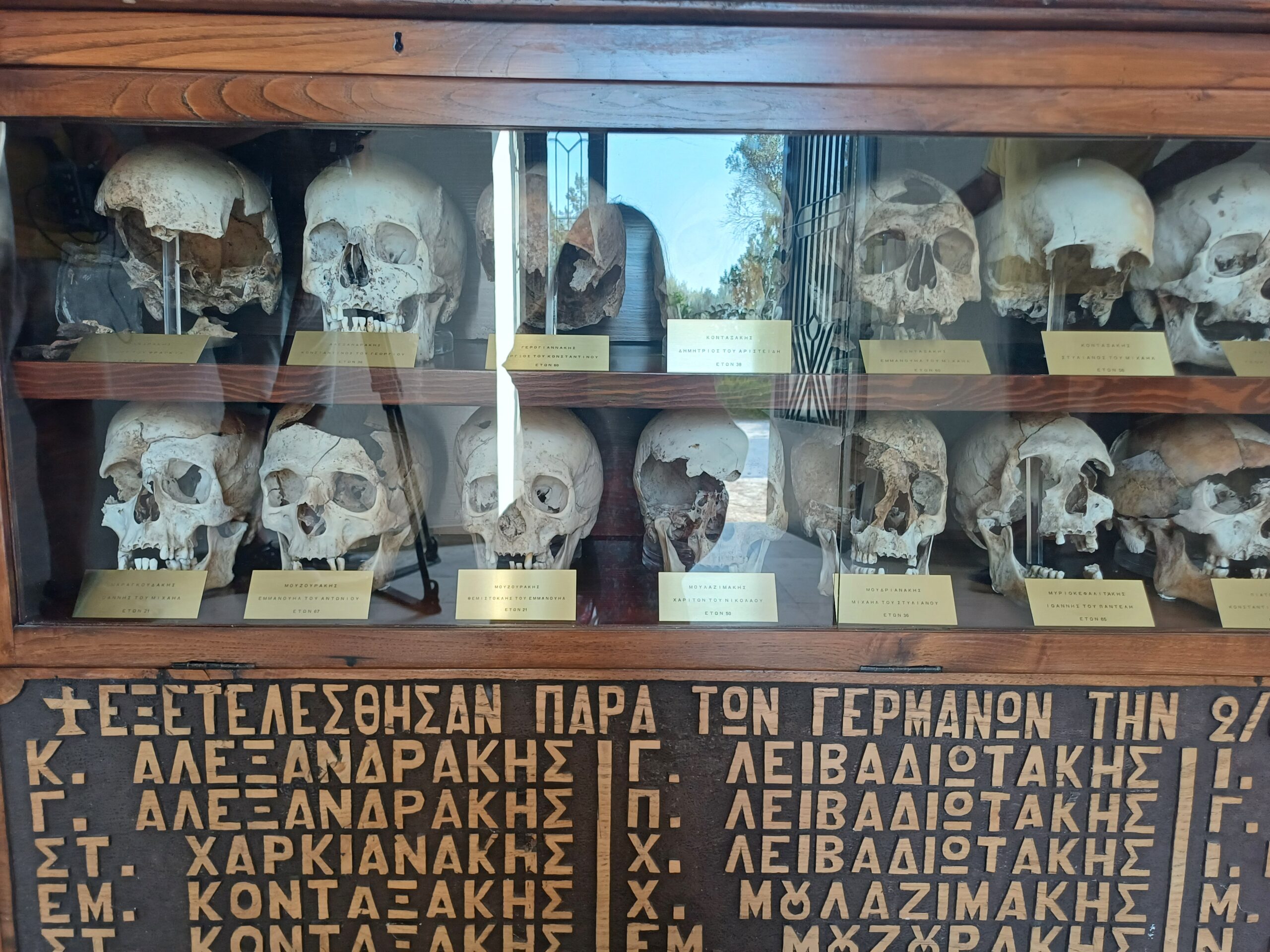 «Οταν φύγαν οι Γερμανοί, οι μητέρες, οι αδελφές, οι σύζυγοι των θυμάτων, σκάψαν τον λάκκο εδώ, βγάλαν σιγά σιγά τα οστά. Τα πλύνανε, τα καθαρίσανε και είχαν την πρόνοια να διατηρήσουν τα κρανία όσο μπορούνε σε καλύτερη κατάσταση».