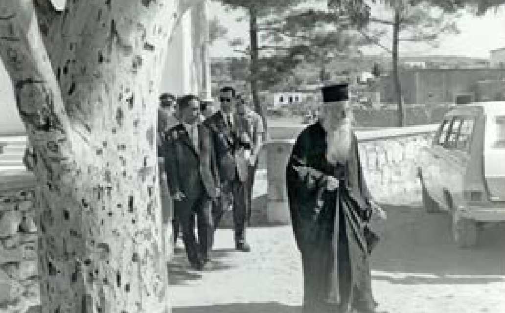 Από το γνωστό …χορηγό της στήλης Σταμ. Γιαννιώτη και αυτή η φωτογραφία, που είναι αχρονολόγητη, αλλά πιστεύεται ότι είναι τραβηγμένη στα μέσα περίπου της δεκαετίας του 1960. Ο Μητροπολίτης Μελέτιος μετά από επίσκεψη στο καινούργιο Δημοτικό Σχολείο. Πίσω του αριστερά ο δάσκαλος Ιωάννης Μασσέλος και δίπλα του άγνωστος άνδρας, πιθανόν επιθεωρητής. Πίσω αριστερά από το δάσκαλο, αυτός που διακρίνεται ελάχιστα πρέπει να είναι ο Εμμ. Καραβουσάνος και δίπλα του ένας αξιωματικός της Χωροφυλακής.