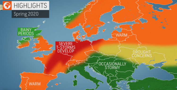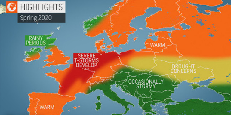 Με βάση τις προβλέψεις των Αμερικανών μετεωρολόγων, λοιπόν, «η έλλειψη ψυχρών αερίων μαζών που παρατηρήθηκε στην Ευρώπη τον χειμώνα θα συνεχιστεί και κατά την άνοιξη, με την ήπειρο, στο μεγαλύτερο μέρος της, να γνωρίζει θερμοκρασίες υψηλότερες του φυσιολογικού». Ωστόσο, η Accuweather αναφέρει επίσης, όσον αφορά τη γενική πρόβλεψή της, ότι «επικίνδυνα καιρικά φαινόμενα αναμένεται να κάνουν την εμφάνισή τους σε αρκετές χώρες την περίοδο από τον Μάρτιο μέχρι και τον Μάιο».