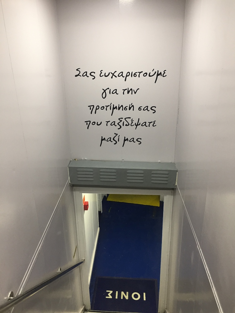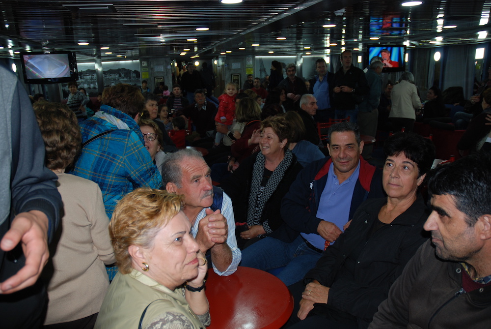 Οι πόρτες άνοιξαν και αφού ξεφόρτωσε τα οχήματα που ταξίδεψαν, όλοι επιβιβάστηκαν στο πλοίο για να δουν τις εγκαταστάσεις του, να ευχηθούν και να παρακολουθήσουν τον αγιασμό.