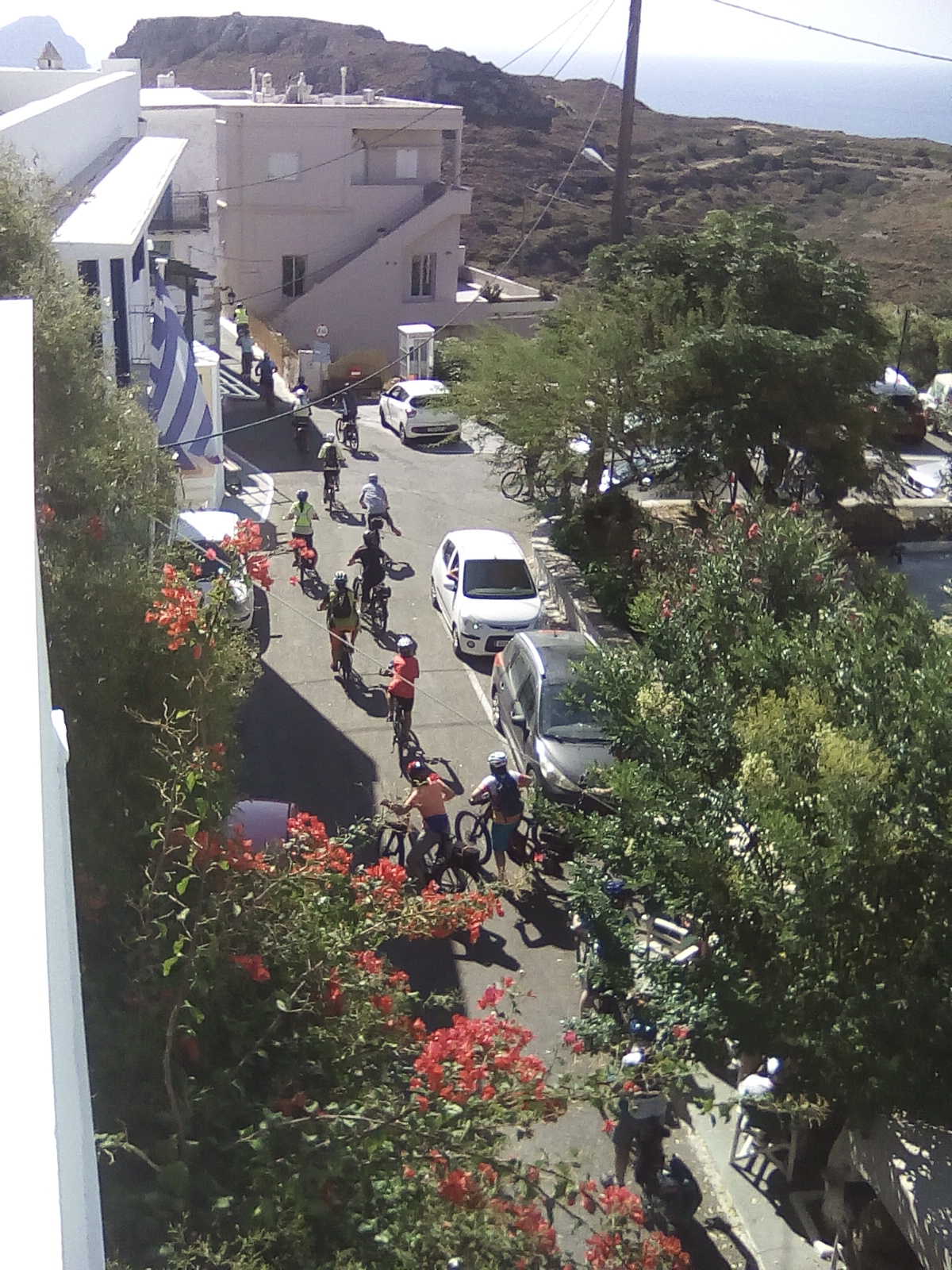 Εν πάση περιπτώσει όσοι είδαν στην πλατεία της Χώρας αυτούς τους ανθρώπους σίγουρα σκέφτηκαν και την προοπτική αυτού του εναλλακτικού τουρισμού, άσχετα αν δεν το έχουμε …εμπεδώσει ακόμη. Λίγες ώρες αργότερα πάντως το Κ.Ι.Π.Α. εξέδιδε ανακοίνωση ότι είναι αναγκασμένο να ματαιώσει τον ποδηλατικό αγώνα που είχε προαναγγείλει για το 3ήμερο της 28ης Οκτωβρίου, καθώς είχαν ήδη δημοσιευθεί πληροφορίες ότι το πλοίο της γραμμής θα διέκοπτε τα δρομολόγιά του από 25 Οκτωβρίου μέχρι 30 Νοεμβρίου και μάλιστα αυτό, καίτοι έχει αναγγελθεί στο Υπ. Ναυτιλίας, δεν έχει ανακοινωθεί επίσημα (η είδηση δημοσιεύθηκε από την ιστοσελίδα μας πριν λίγες μέρες) έτσι ώστε ο κόσμος που τυχόν προγραμμάτιζε ταξίδι να μην γνωρίζει τίποτε και να βρεθεί προ τετελεσμένων την τελευταία στιγμή. Έτσι, μάλλον θα πρέπει να ….αναβληθούν και οι όποιες συζητήσεις σχετικά με επιμήκυνση της τουριστικής περιόδου μέχρι να συνειδητοποιήσουν όλοι οι παράγοντες του τουρισμού (πλοιοκτήτες, επιχειρηματίες κλπ) ότι δεν πρέπει να αιφνιδιάζουν το κοινό, είτε πρόκειται αυτό να το αποτελούν απλοί πολίτες, που κατεβαίνουν για τις ελιές τους, τουρίστες που έρχονται για ποδηλασία, ή ιδρύματα που πασχίζουν για το νησί.
