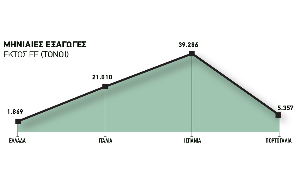 Μηνιαίες εξαγωγές( Εκτός ΕΕ – τόνοι )