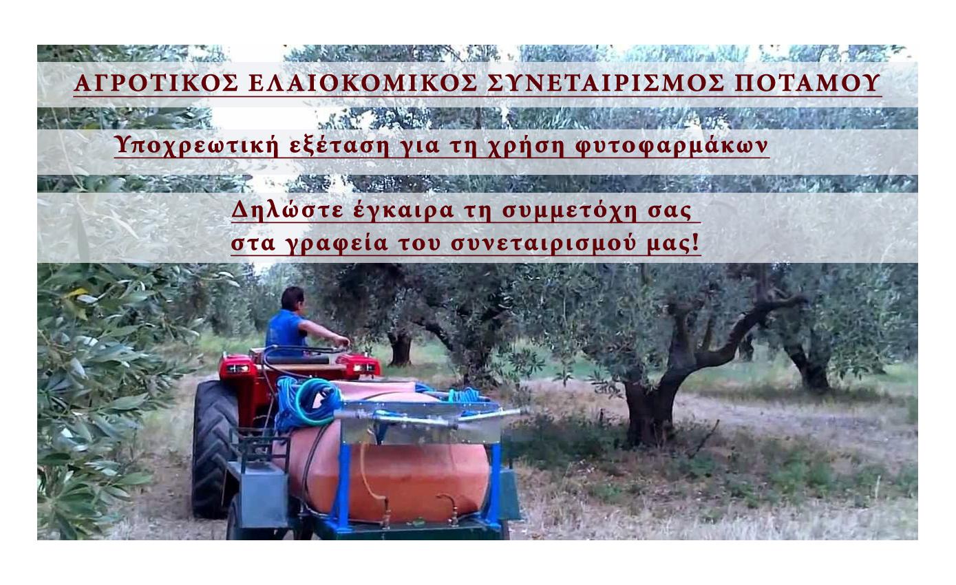Αγρ. Συν. Ποταμού – Υποχρεωτική Πιστοποίηση στην ορθολογική χρήση των φυτοφαρμάκων