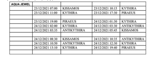 🛎  Ενημερώνουμε το επιβατικό κοινό ότι θα πραγματοποιηθούν οι παρακάτω αλλαγές στα δρομολόγια του πλοίου Aqua Jewel τις επόμενες μέρες ως εξής: