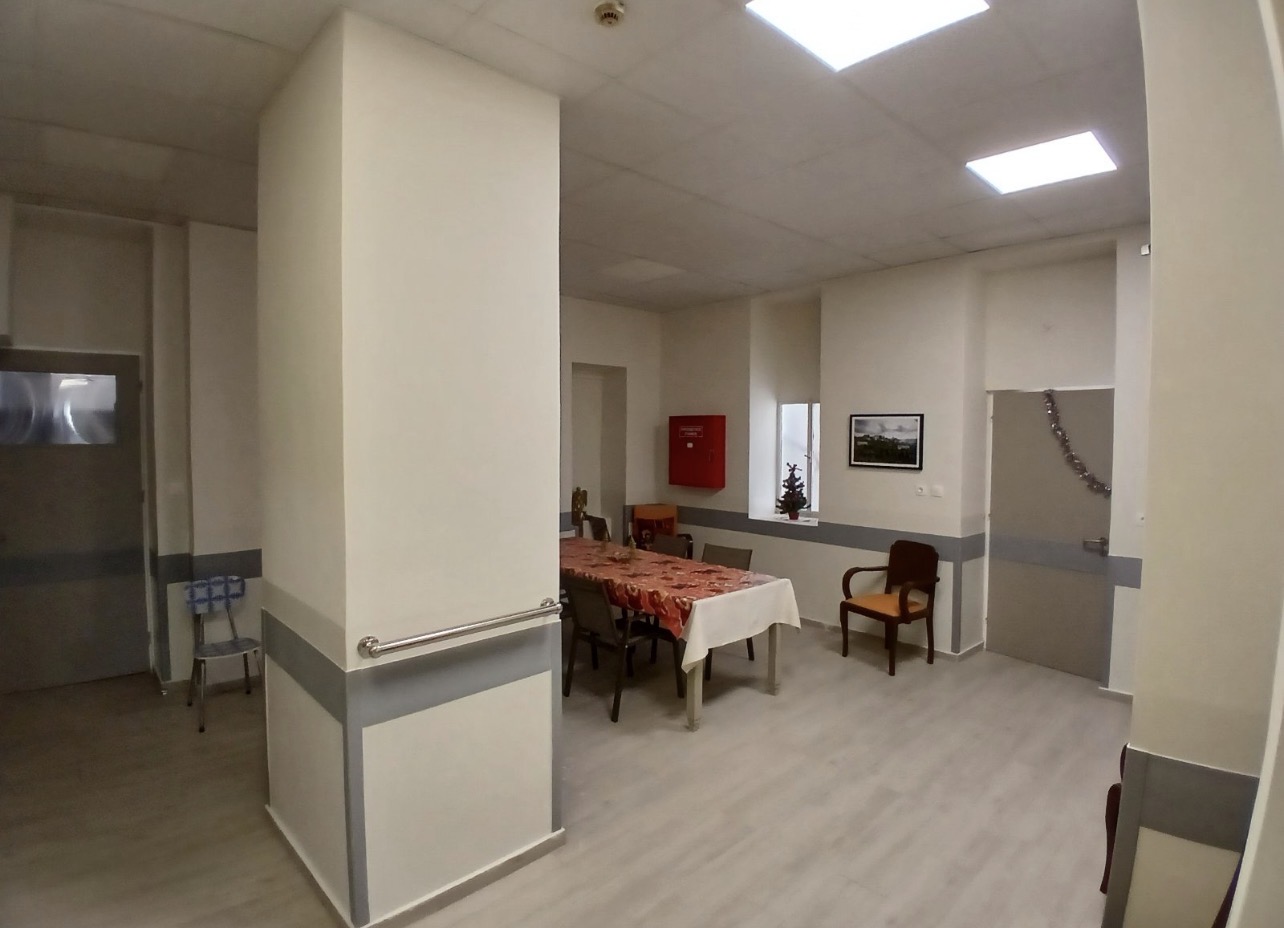 Συγκεκριμένα, μετά την προ ετών ανακαίνιση του χώρου εστίασης των τροφίμων και την ολοκλήρωση της εξωτερικής θερμομόνωσης και την πλήρη ανακατασκευή της κουζίνας, και τα δύο έργα υψηλού κόστους, που έγιναν με χορηγία της Κοινωνικής Εταιρείας «ΠΑΝΑΓΙΑ ΜΥΡΤΙΔΙΩΤΙΣΣΑ» από το Μπρισμπαίην Αυστραλίας, προχώρησε και η ανακαίνιση και των χώρων ενδιαίτησης και διαμονής των τροφίμων. Συγκεκριμένα, έγινε πλήρης υδροχρωματισμός των όψεων του κτηρίου του Γηροκομείου, ανακατασκευή 9 δωματίων τροφίμων στον Α΄ όροφο, με αλλαγή ηλεκτρικών και υδραυλικών εγκαταστάσεων, τουαλετών και λοιπών επιπλώσεων με αλλαγή κλινών με κατάλληλες για τροφίμους οίκων ευγηρίας και μάλιστα ΑΜΕΑ, καθώς και πλήρης ανακατασκευή ψευδοροφής, κουφωμάτων, θυρών και ευπρεπισμός των διαδρόμων με παράλληλη εγκατάσταση συστήματος ενδοεπικοινωνίας για ασφαλέστερη και ταχύτερη επέμβαση του προσωπικού σε περιπτώσεις ανάγκης. Εκτός από τις συγκεκριμένες εργασίες έγιναν και αλλαγές στο χώρο του ισογείου με διαμόρφωση σύγχρονου φαρμακείου και ιατρείου με τον αναγκαίο ιατρικό εξοπλισμό.