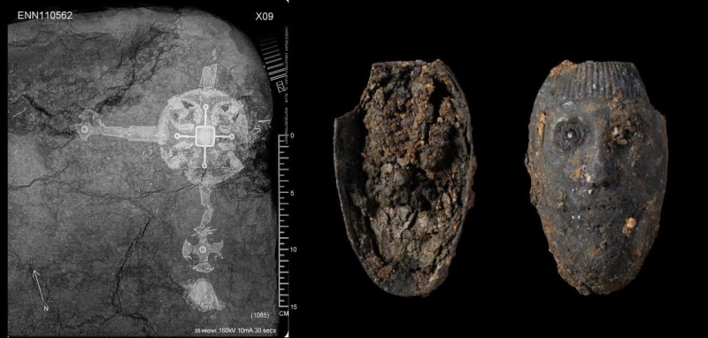 Ο τάφος περιείχε και άλλα θρησκευτικά και πολύτιμα αντικείμενα, όπως ένας διακοσμημένος σταυρός, υποδηλώνοντας ότι ανήκε σε θεοσεβούμενο πρόσωπο ((Courtesy of Museum of London Archaeology))