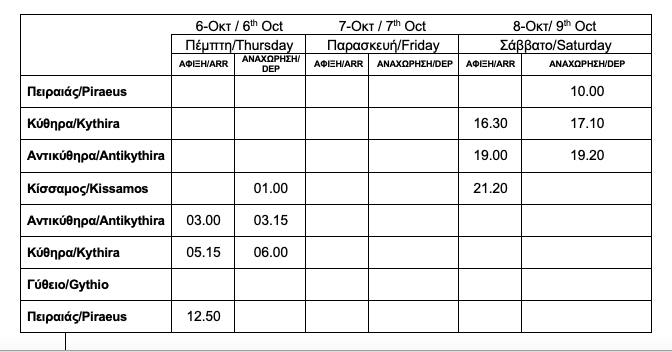 Ενημερώνουμε το επιβατικό κοινό πως το δρομολόγιο του AQUA JEWEL αύριο 6/10/22 και μεθαύριο 7/10/222 τροποποιείται λόγω δυσχερών καιρικών συνθηκών στην περιοχή του πλου του, ως κάτωθι: