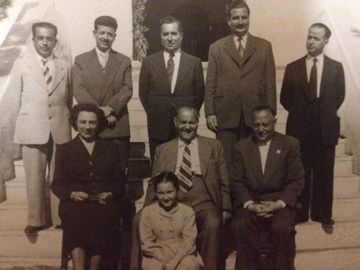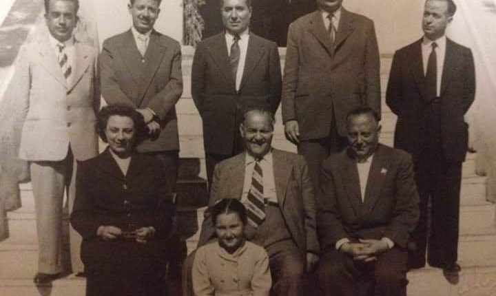 Μία φωτογραφία που χρονολογείται περίπου στις αρχές του 1950. Μερικοί καθηγητές φωτογραφίζονται έξω από το Γυμνάσιο Κυθήρων.