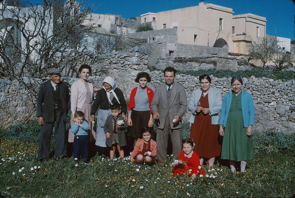 Εδώ, την άνοιξη του 1960, ο φακός του ευαίσθητου ομογενούς από το Μυλοπόταμο «συλλαμβάνει» μία οικογενειακή πόζα στο Κατούνι. Η οικογένεια του Νίκου Βάρδα. Ο ίδιος, η σύζυγός του Σταματικώ, τα παιδιά τους Καίτη, Μαρία και Χρήστος και οι γονείς τους, σε ένα σύμπορο μία ανοιξιάτικη μέρα, όπως μαρτυρούν οι ανθισμένες μαργαρίτες και οι αγκινάρες. Μία εικόνα χίλιες λέξεις, μία σπάνια οικογενειακή στιγμή, που σίγουρα θα φέρει πολλές αναμνήσεις σε όσους είναι ζωντανοί από τους εικονιζόμενους, αλλά και σε όσους γνωρίζουν τα πρόσωπα.