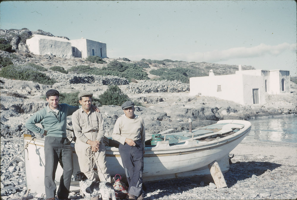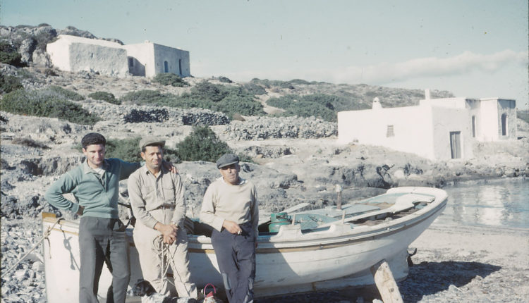 Στο Λιμνιώνα το 1960 πήγαινες μόνο με το γάιδαρο ή με τα πόδια σου. Όπως αυτοί εδώ οι κυνηγοί, που κατέβηκαν στην παραλία κυνηγώντας και φωτογραφίζονται δίπλα στη βάρκα με τη θάλασσα πίσω τους να είναι σε απόλυτη ηρεμία. Λάδι, που λένε. Άνθρωποι και τοπίο σε μία αρμονική συνύπαρξη.