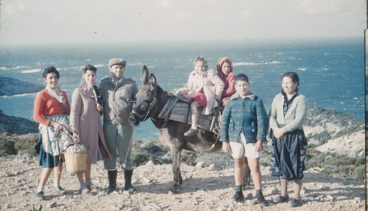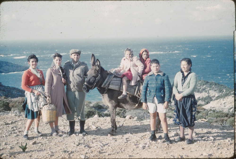 Πρέπει να είναι φθινόπωρο του 1960 αν κρίνουμε από την ασκέλα που μόλις έχει φυτρώσει και η οικογένεια Ποτήρη από το Μυλοπόταμο κατεβαίνει με το γάιδαρο εκδρομή μάλλον στο Λιμιώνα, καθώς στο βάθος φαίνονται φουρτουνιασμένα τα Δυτικά παράλια των Κυθήρων.