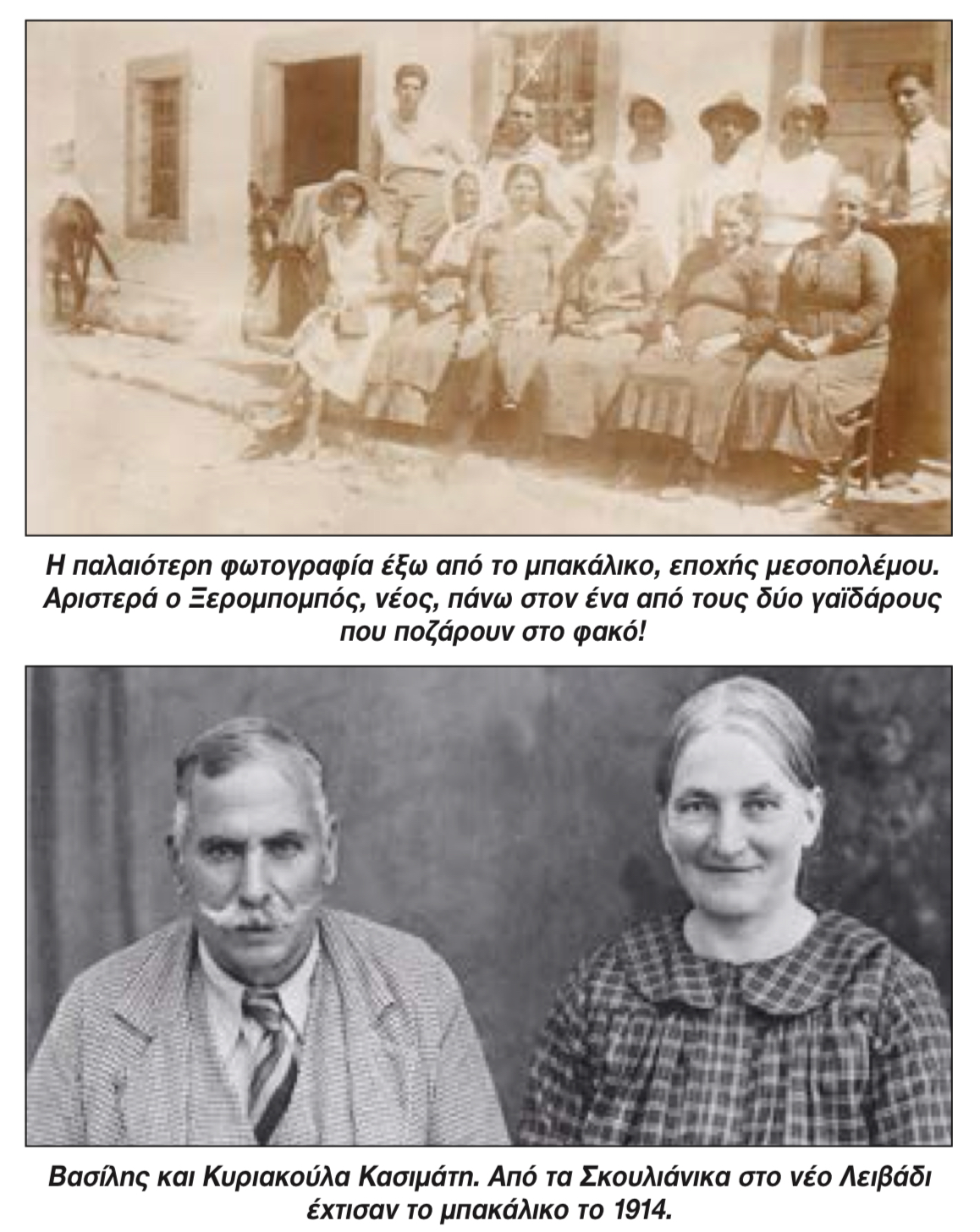 Το μπακάλικο αυτό είχε ξεκινήσει από ένα δωμάτιο στα Σκουλιάνικα του πατέρα του, του Ξεροβασίλη, που μετακόμισε στο μεσοπόλεμο στο έρημο τότε Πάνω Λειβάδι. Το μαγαζί αυτό ήταν το στέκι μας κι ο καημένος ο κυρ Παναγιώτης, ο Ξερομπομπός, όπως τον ήξεραν όλοι, είχε μεγάλη υπομονή με μας τους πιτσιρικάδες. Μάς έβλεπε βέβαια και σαν πελάτες, αλλά τι ψιλά είχαμε με την ανέχεια όλων το 1960; Άντε καμία καραμέλα, κανένα μπισκότο και πολύ μας. Εκεί όμως που έκανε στραβά μάτια ήταν στη λαθρανάγνωση. Βλέπετε, το κατάστημα, εκτός από παντοπωλείο, οινοπωλείο, υαλοπωλείο και όλα τα εις -πωλείο είχε το κοινοτικό τηλέφωνο, το ταχυδρομείο και το πρακτορείο εφημερίδων για όλο το νησί. Πουλούσε και φυσίγγια, σκάγια, μπαρούτι, υφάσματα, κλωστές, κουβαρίστρες, τρόφιμα, κρασιά, όταν ήρθε το ηλεκτρικό και κατεψυγμένα και ό,τι άλλο βάλει ο νους του ανθρώπου και οι ανάγκες του κοσμάκη. Παράδεισος για μας που πολλά από όσα βλέπαμε τα λαχταρούσαμε απλά, αλλά ήταν απλησίαστα για τα οικονομικά μας δεδομένα και τα άπιαστα όνειρά μας. Όμως, εκείνο που ήταν πιο προσιτό, ήταν, όταν κάθε Σάββατο με έστελνε ο πατέρας μου να πάρω εφημερίδες με το κιλό, από τις επιστροφές που έκανε κάθε Πέμπτη ο κυρ Παναγιώτης. Για να μην έχουν έξοδα να επιστρέψουν τόσα κιλά, έκοβαν με μία καρφίτσα τον τίτλο με την ημερομηνία, τα έστελναν πίσω στο κεντρικό πρακτορείο και η διαφορά με αυτές που είχαν λάβει ήταν η πληρωμή με παρακράτηση ενός ασήμαντου ποσού για το κέρδος του τελικού πωλητή. Τι θησαυρός ήταν αυτός για μας που θέλαμε να μάθουμε τι γίνεται παραπέρα! (Το ραδιόφωνο μπήκε στη ζωή μας αρκετά μετά). Έτσι ζητούσαμε από τον κυρ Παναγιώτη να μας βάλει ανακατεμένες εφημερίδες και όχι όλο ίδιες, να έχουμε ποικιλία για ανάγνωση. Θησαυρός για μας ήταν η εβδομαδιαία ΕΜΠΡΟΣ, γιατί ήταν με πολλές σελίδες και ένα σωρό θέματα, άνευ αξίας τα περισσότερα, αλλά με μεγάλη γκάμα. Έτσι οι πολυσέλιδες εφημερίδες κι οι αθλητικές ήταν περιζήτητες. Οι τακτικοί αναγνώστες ήταν ελάχιστοι και σταθεροί, έτσι το πρακτορείο έστελνε περίπου όσες ζητιούνταν, όμως κι από τα χωριά έστελναν αρκετές πίσω, αφού κι εκεί οι σταθεροί πελάτες τους ήταν ελάχιστοι.