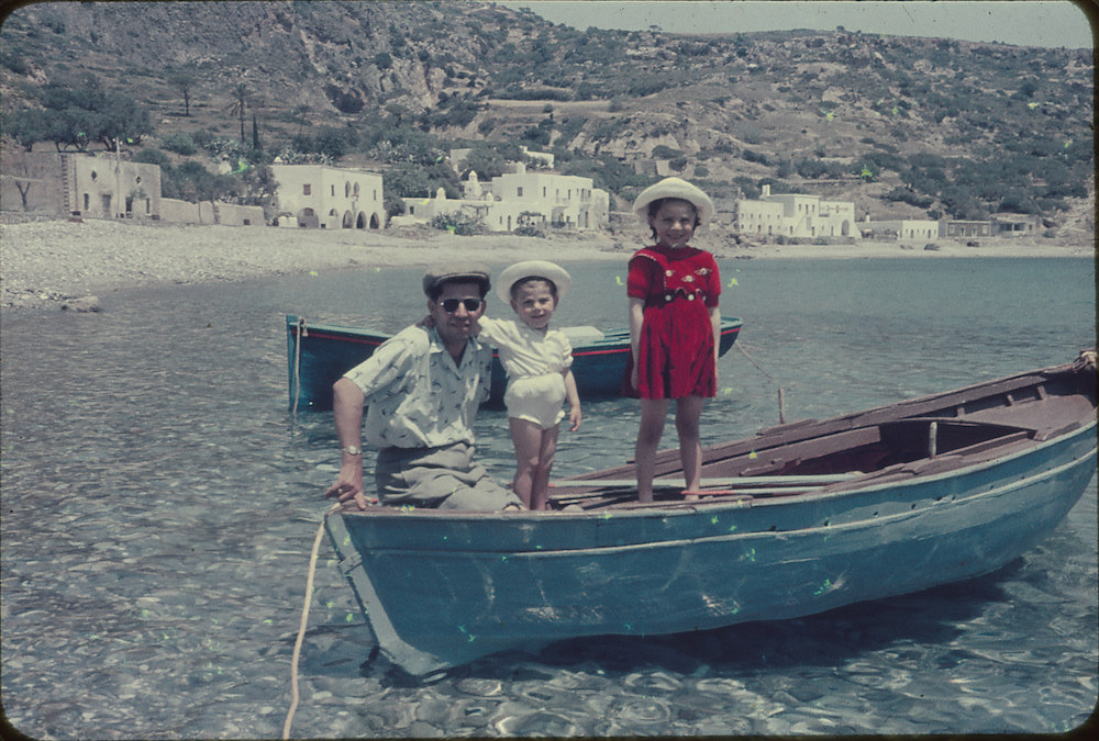 Λίγες στιγμές χαλάρωσης από την επίσκεψη της οικογένειας των ομογενών του Γ. Ποτήρη. Στο Καψάλι το 1960 ο ίδιος και τα δύο παιδιά του μέσα στη βάρκα. Οι παλιές οι αναμνήσεις θα περνούν τώρα μπροστά στα μάτια των παιδιών και των εγγονιών, κοντά εξήντα χρόνια μετά…