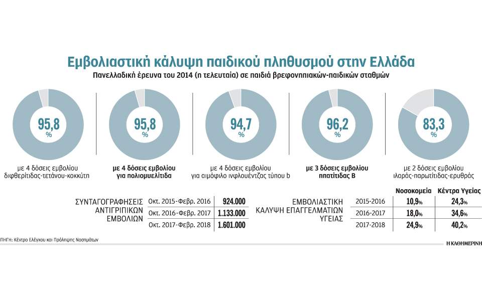 Δισταγμό στα όρια της αμφισβήτησης, ο οποίος ωστόσο εύκολα αίρεται με τη σωστή ενημέρωση εκφράζουν σε ό,τι αφορά τον εμβολιασμό των παιδιών τους όλο και περισσότεροι γονείς στη χώρα μας. Μπορεί το αντιεμβολιαστικό κίνημα στην Ελλάδα να μην έχει λάβει ακόμα διαστάσεις και η εμβολιαστική κάλυψη του πληθυσμού να είναι υψηλή, ωστόσο μεγάλο ποσοστό των γονέων –το οποίο εκτιμάται ότι ξεπερνά το 50%– ζητεί από τους παιδιάτρους να αφιερώσουν χρόνο ώστε τους «πείσουν» για την ασφάλεια των εμβολίων, τα οποία σε μεγάλο βαθμό έχουν πέσει θύμα της αποτελεσματικότητάς τους: εκρίζωσαν από την καθημερινότητα, αλλά και τη μνήμη των νεοτέρων, ασθένειες οι οποίες δεκαετίες πριν, θέριζαν τον πληθυσμό.