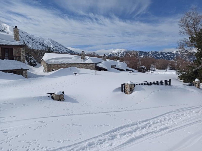 Από το κέντρο πληροφόρησης για τα Λευκά Όρη και τον εθνικό δρυμό, μέχρι τις άλλες κτιριακές εγκαταστάσεις που υπάρχουν εκεί, ο χώρος στάθμευσης οχημάτων, αλλά και το φυλάκιο έχουν «χαθεί» κάτω από τα χιόνια.