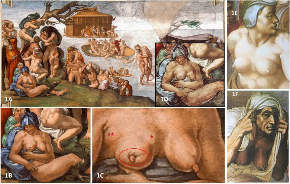 Σε μια νέα μελέτη, ερευνητές από το Πανεπιστήμιο του Paris-Saclay εντόπισαν σημάδια καρκίνου του μαστού σε μια γυναίκα που εμφανίζεται στην τοιχογραφία «Κατακλυσμός».