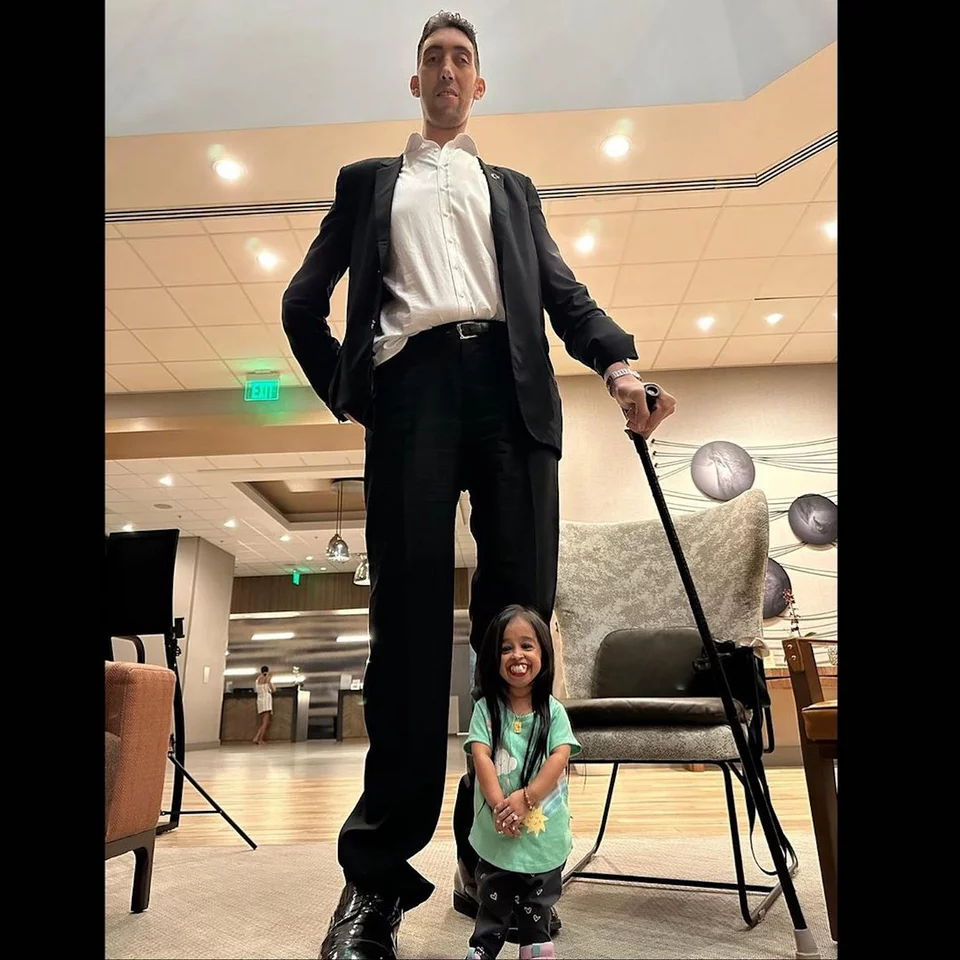 Υπάρχει διαφορά ύψους σχεδόν δύο μέτρων μεταξύ των δύο, οι οποίοι κέρδισαν τους αντίστοιχους τίτλους παγκόσμιου ρεκόρ Guiness το 2009 για τον «ψηλότερο εν ζωή άνδρα» και το 2011 για τη «μικρότερη εν ζωή γυναίκα».