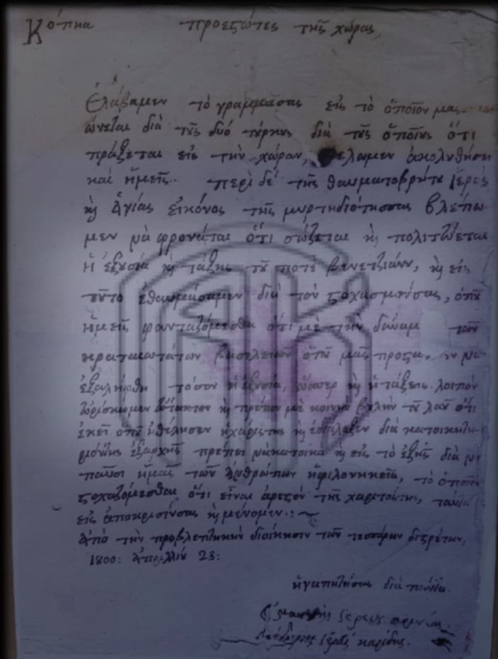 Από το Ιστορικό Αρχείο Κυθήρων “Εκεί όπου ηθέλησεν η χάρις της…”
