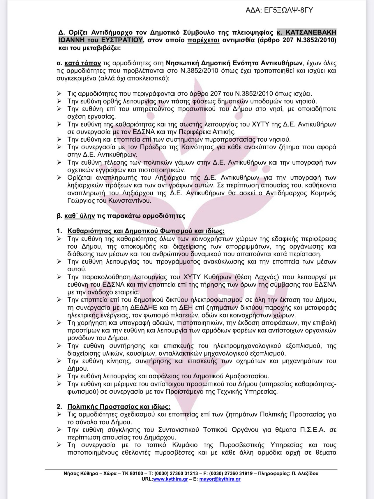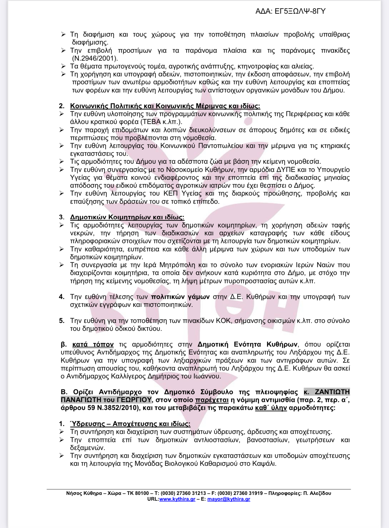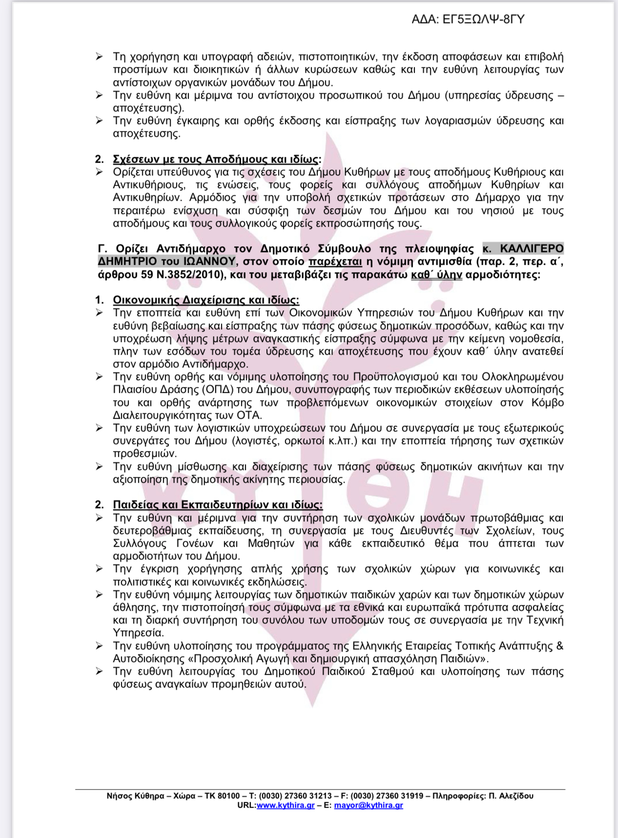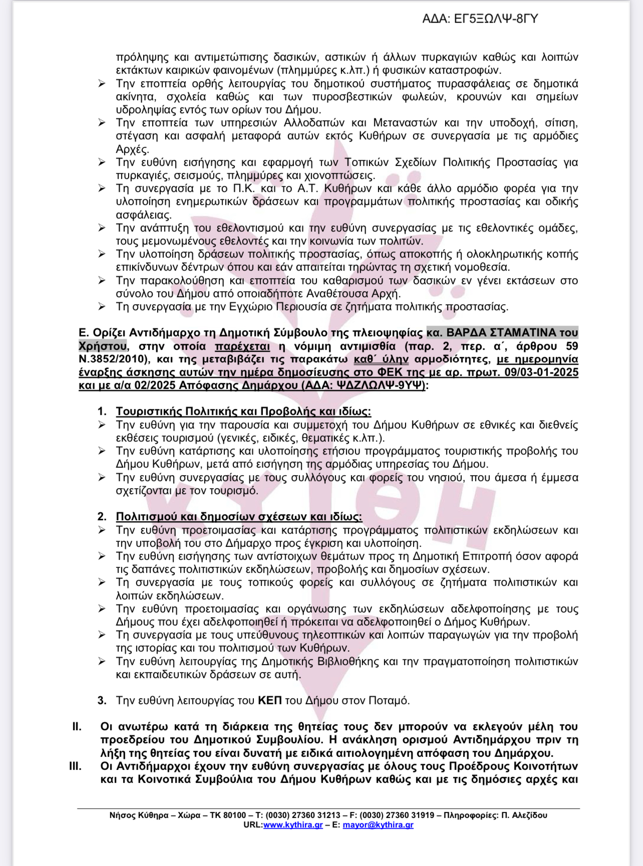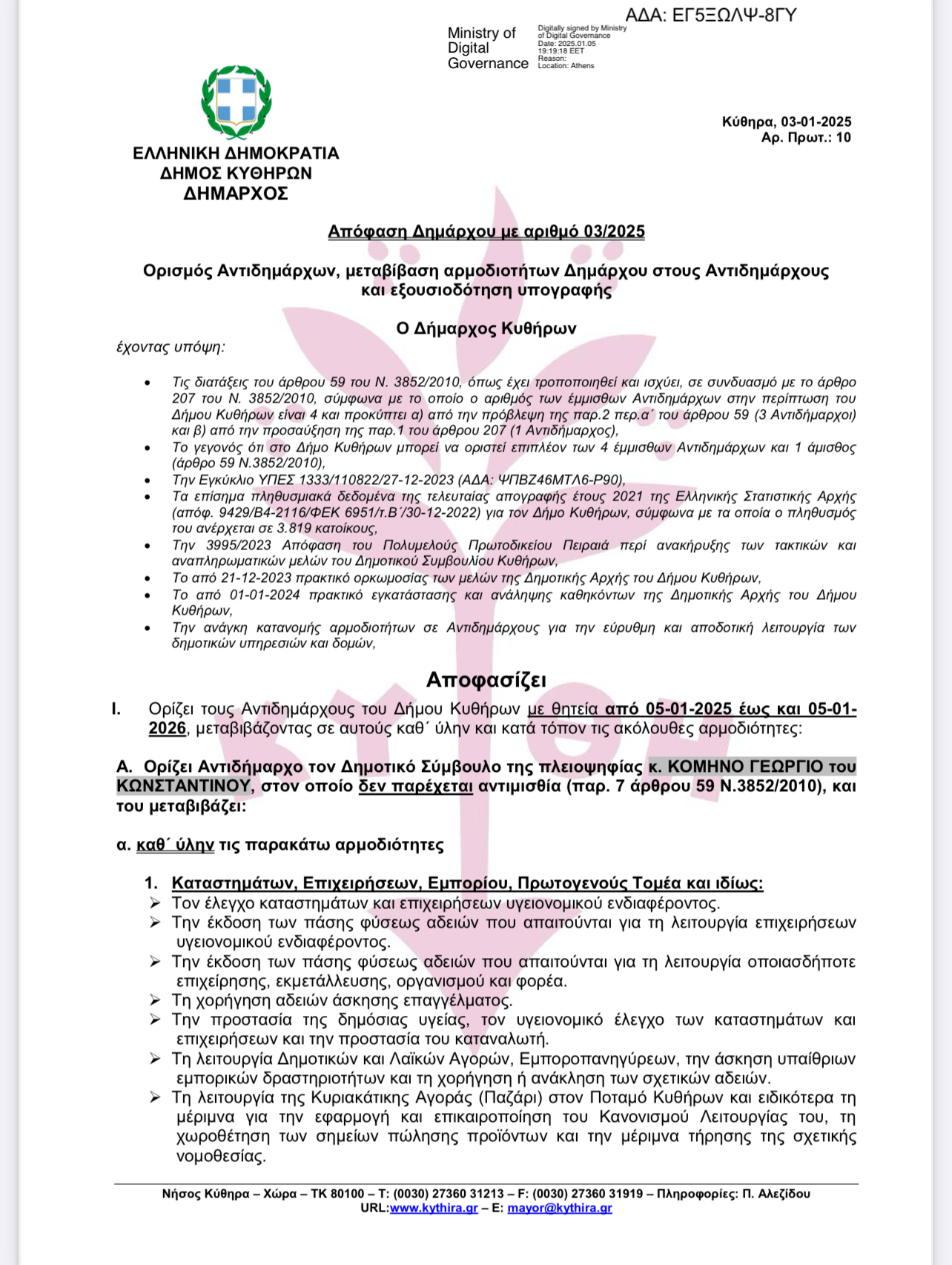 Απόφαση Δημάρχου με αριθμό 03/2025 – Ορισμός Αντιδημάρχων, μεταβίβαση αρμοδιοτήτων Δημάρχου στους Αντιδημάρχους και εξουσιοδότηση υπογραφής