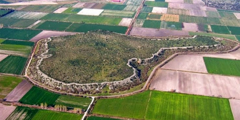 Αεροφωτογραφία της μυκηναϊκής ακρόπολης του Γλα Βοιωτίας