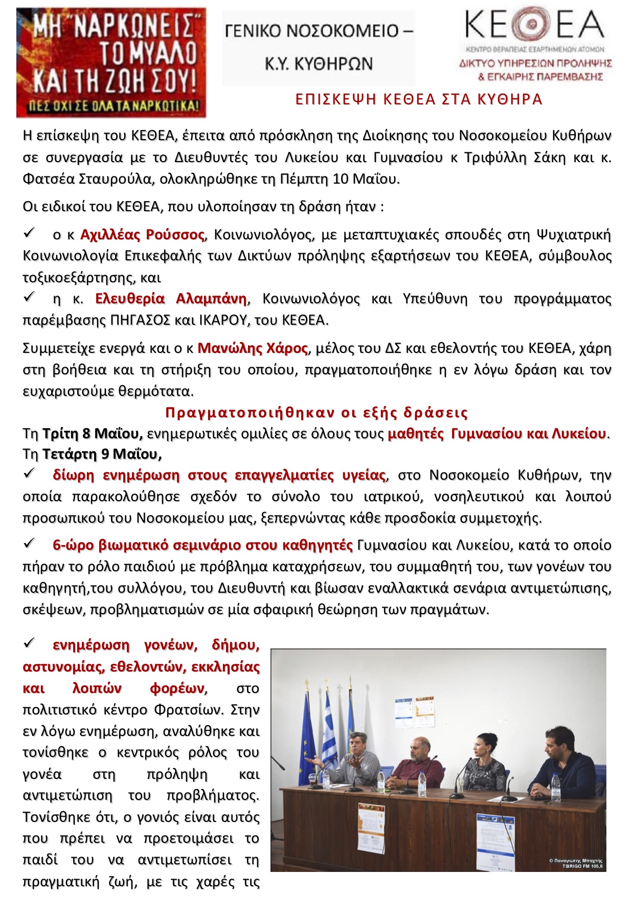 - Απολογισμός της επίσκεψης του ΚΕΘΕΑ στα Κύθηρα