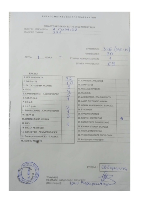 Αποτελέσματα εκλογών 25ης Ιουνίου στα Φράτσια