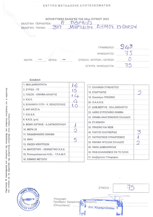 Αποτελέσματα εκλογών 25ης Ιουνίου στα Μυρτίδια