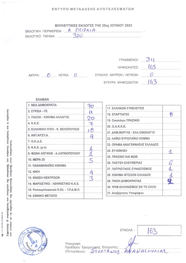 Αποτελέσματα εκλογών 25ης Ιουνίου στην Αγία Πελαγία
