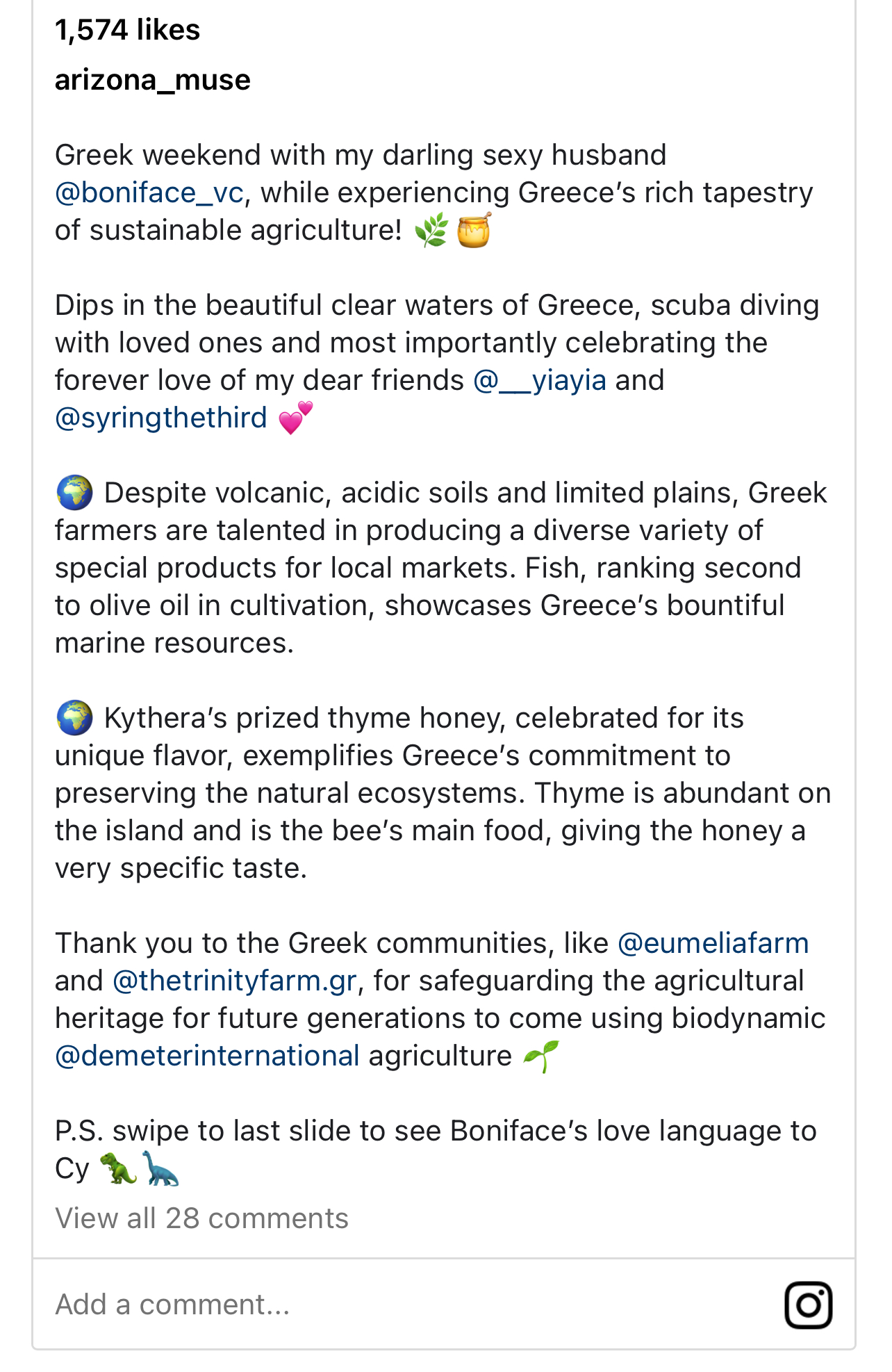 «Σαββατοκύριακο στην Ελλάδα με τον αγαπημένο, σέξι σύζυγό μου, όπου ζήσαμε την πλούσια ποικιλομορφία της ελληνικής βιώσιμης γεωργίας!