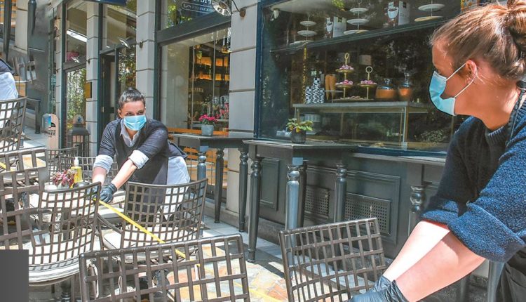 Στο καφέ-εστιατόριο «I Frati» στην Κηφισιά, ιδιοκτήτες και προσωπικό προβάρουν την επόμενη μέρα ξανά και ξανά. Βγάζουν τη μεζούρα, μετρούν την απόσταση που θα χωρίζει το ένα τραπέζι από το άλλο, σπαζοκεφαλιάζουν στις αριθμητικές πράξεις για να υπολογίζουν τη ζημιά, διακοσμούν τα τραπέζια και με… αντισηπτικά.