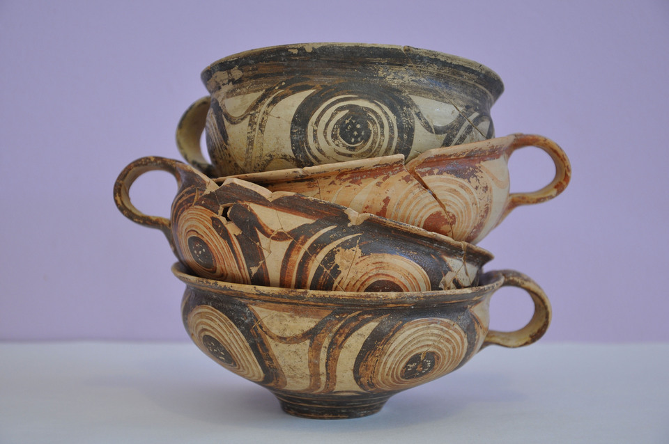 Όπως αναφέρει επίσης η ανακοίνωση, «στους λάκκους αυτούς ερευνήθηκαν οι παλαιότερες ταφές, που συνοδεύονταν από πήλινα επιτραπέζια και αποθηκευτικά αγγεία, ορισμένα εκ των οποίων μνημειώδη, όπως ένα σύνολο από πιθαμφορείς του “ανακτορικού ρυθμού” με συμβολική διακόσμηση, εμπνευσμένη από τον φυτικό και τον θαλάσσιο κόσμο. Βρέθηκαν ακόμη χάλκινα μαχαίρια, εγχειρίδια και ξίφη καθώς και πολυάριθμες αιχμές βελών από χαλκό, οψιανό και πυριτόλιθο. Συνελέγησαν επίσης κοσμήματα, χάντρες περιδεραίων από ποικίλες πρώτες ύλες, περόνες και άλλα αντικείμενα γοήτρου, όπως σφραγιδόλιθοι».