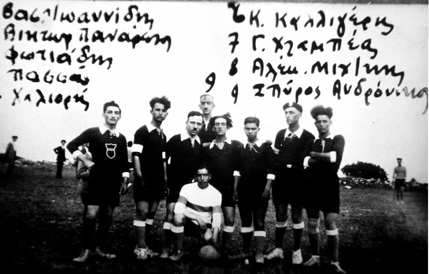 Μικρός θεατής θαύμασα το ταλέντο του Γυμναστή Γιάννη Ματσώτα, αργότερα ποδοσφαιριστή του Λεβαδειακού και του δικού μας Κοσμά Γεραντή, που έπαιξε στην πρώτη ομάδα του Παναθηναϊκού. Πρώτο ηγέτη και ψυχή του ΑΟΠ, θυμάμαι τον αξέχαστο Πολυχρόνη (Πόλη) Λειβαδίτη, που μαθητής του Γυμνασίου ακόμα, βιρτουόζος της μπάλας, μας οργάνωνε και μας προέτρεπε να συμμετέχουμε στον εξωραϊσμό του αγωνιστικού χώρου και στις προπονήσεις. Μέχρι και αθλητικές στολές κατόρθωσε να αποκτήσουμε, μαύρες με μεγάλα τα άσπρα γράμματα, «ΑΟΠ», στο στήθος. Αυτές τις στολές θυμόμαστε και αυτές φοράμε στις περισσότερες φωτογραφίες.