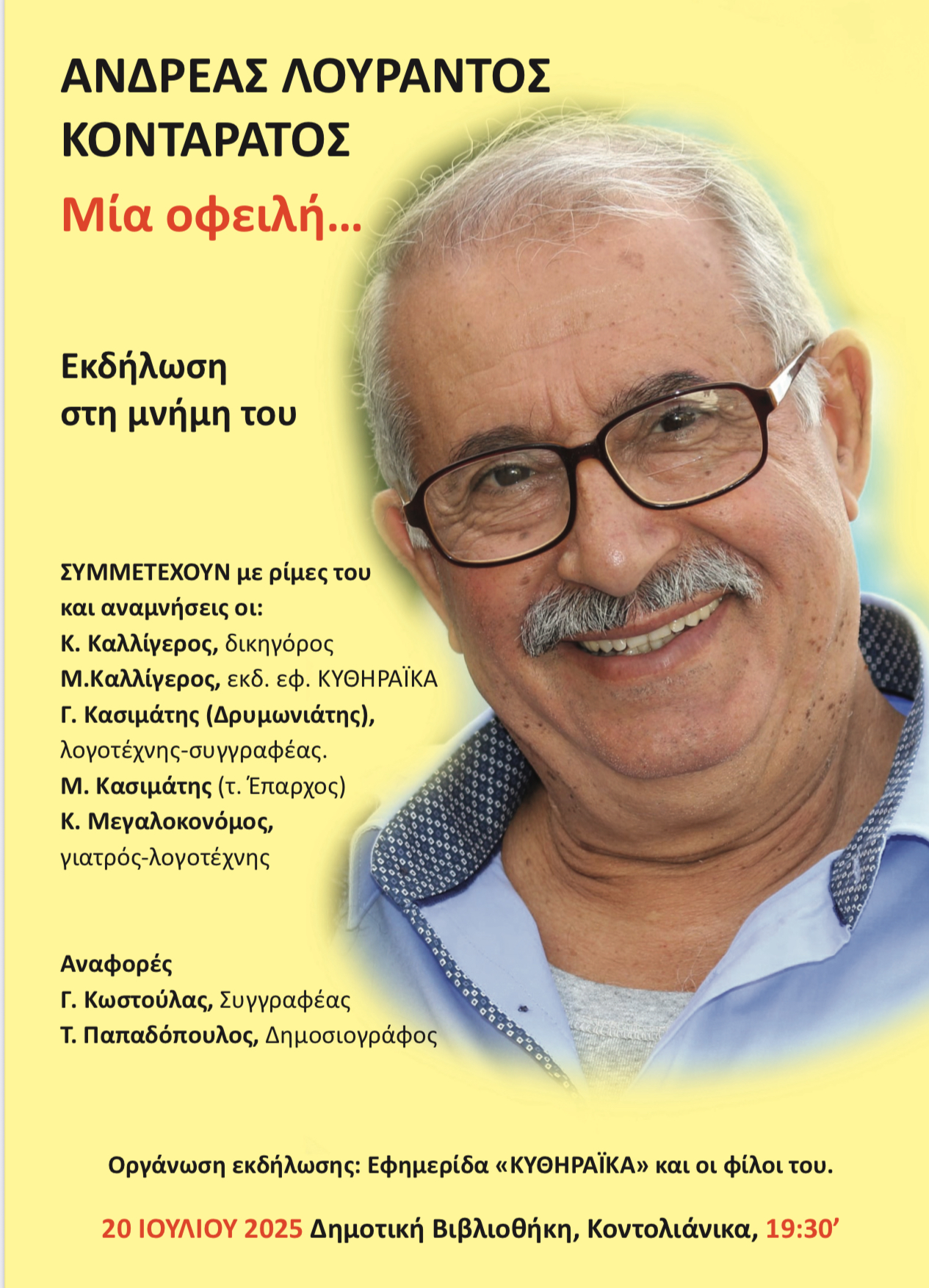 - Αύριο η εκδήλωση στη μνήμη του Ανδρέα Λουράντου Κονταράτου