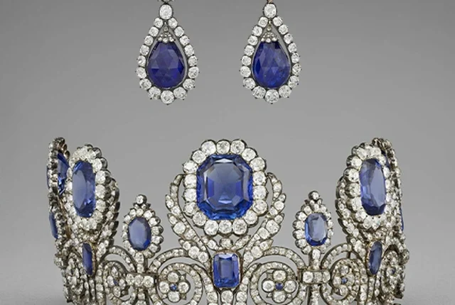 Το χαρακτηριστικό μπλε χρώμα στο συγκεκριμένο σετ οφείλεται στα ζαφείρια Κεϋλάνης.