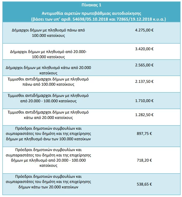 Οι αποδοχές των αιρετών της πρωτοβάθμιας αυτοδιοίκησης: