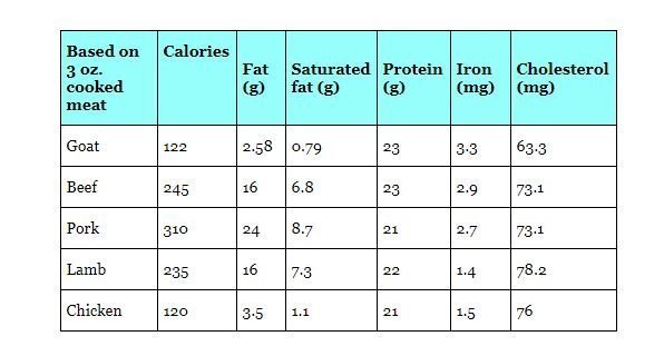 Είναι το πιο υγιεινό από τα κόκκινα κρέατα, όπως φαίνεται στον πίνακα που ακολουθεί. Επίσης είναι καλύτερο ακόμη και από το κοτόπουλο. Περιέχει το 72% του κορεσμένου λίπους που έχει το κοτόπουλο και μόνο το 16% του κορεσμένου λίπους του βοδινού. Επίσης, δεν έχει ορμόνες.