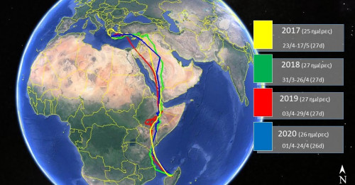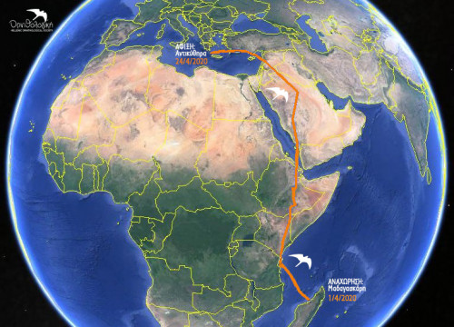 Από τη βορειοδυτική Μαδαγασκάρη περνάει με συνεχή πτήση στην απέναντι ακτή της Μοζαμβίκης αλλά αν οι άνεμοι είναι ευνοϊκοί, ενδέχεται να βρεθεί και πολύ μακρύτερα ως τη νήσο Ζανζιβάρη. Ακολούθως, κινείται με βόρεια κατεύθυνση περνώντας τις χώρες της ανατολικής Αφρικής (Τανζανία, Κένυα, Αιθιοπία), διασχίζει την Ερυθρά Θάλασσα στο στενότερό της σημείο και μετά πετά πάνω από τις ερήμους της αραβικής χερσονήσου. Φτάνοντας σε βόρειο πλάτος ίδιο με αυτό του Αιγαίου, κάνει την τελική στροφή πορείας προς τα δυτικά, για να καταλήξει στα Αντικύθηρα. Κάθε χρόνο! Με την ίδια συνέπεια!» καταλήγει η ανακοίνωση.