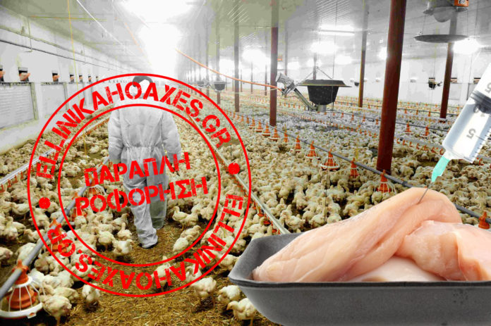 Αυτό το βίντεο ΔΕΝ δείχνει κοτόπουλα στην Ελλάδα στα οποία δίνονται αυξητικές ορμόνες