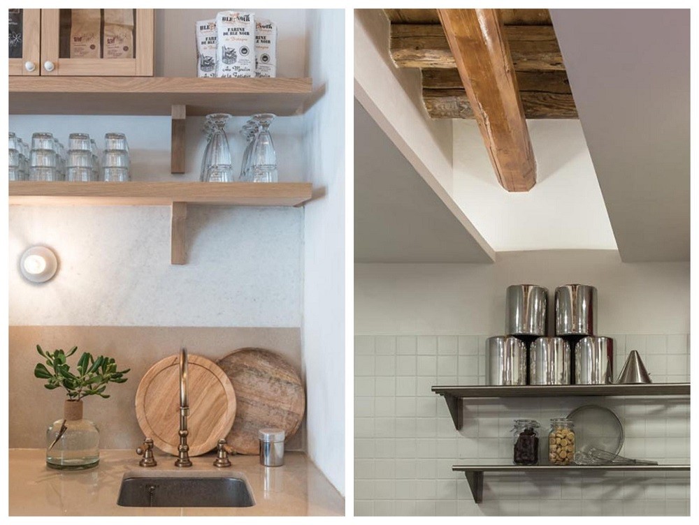 Η προσεκτική επιλογή υλικών και στοιχείων, όπως το μωσαϊκό στο πάτωμα, τα λευκά μάρμαρα από τη Νάξο, τα χτισμένα παγκάκια και τα ξύλινα ταβάνια αναβιώνουν την αισθητική των παλιών νησιώτικων σπιτιών. Τα custom made έπιπλα και οι κατασκευές από ξύλο αναδεικνύουν ιδανικά τη σχεδιαστική έμπνευση των Interior Design Laboratorium, ενώ οι διακοσμητικές πινελιές χαλκού, πορσελάνης και γυαλιού χαρίζουν λαμπερές νότες στο χώρο. Το παλιό συναντά το καινούργιο, συνθέτοντας μια ζεστή και φιλική ατμόσφαιρα!