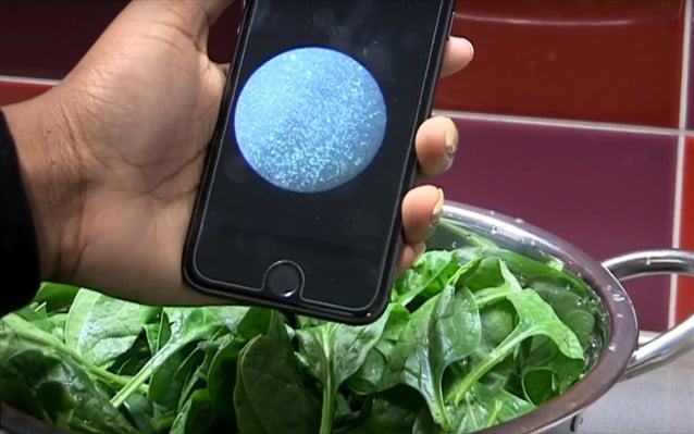 Το περασμένο καλοκαίρι, η μέθοδος οπτικού εντοπισμού είχε προσαρμοστεί για πιθανή οικιακή χρήση με ένα αξεσουάρ- μικροσκόπιο για smartphone, το οποίο μπορεί να βρει κανείς online για περίπου 30 δολάρια. Το πρώτο βήμα στο νέο τεστ είναι η συλλογή ενός δείγματος νερού, χυμού ή πολτοποιημένου λαχανικού και η τοποθέτηση του τσιπ εντός του. Ένας φοιτητής στο εργαστήριο της Χε ανέπτυξε μια απλή εφαρμογή για smartphone, η οποία εντοπίζει οπτικά τα βακτηρίδια στα δείγματα στα οποία έχει τοποθετηθεί το τσιπ. Σημειώνεται πως το συγκεκριμένο τσιπ εντοπίζει μόνο βακτηρίδια και όχι σάκχαρα, λίπη και πρωτεΐνες σε τρόφιμα ή χώμα.