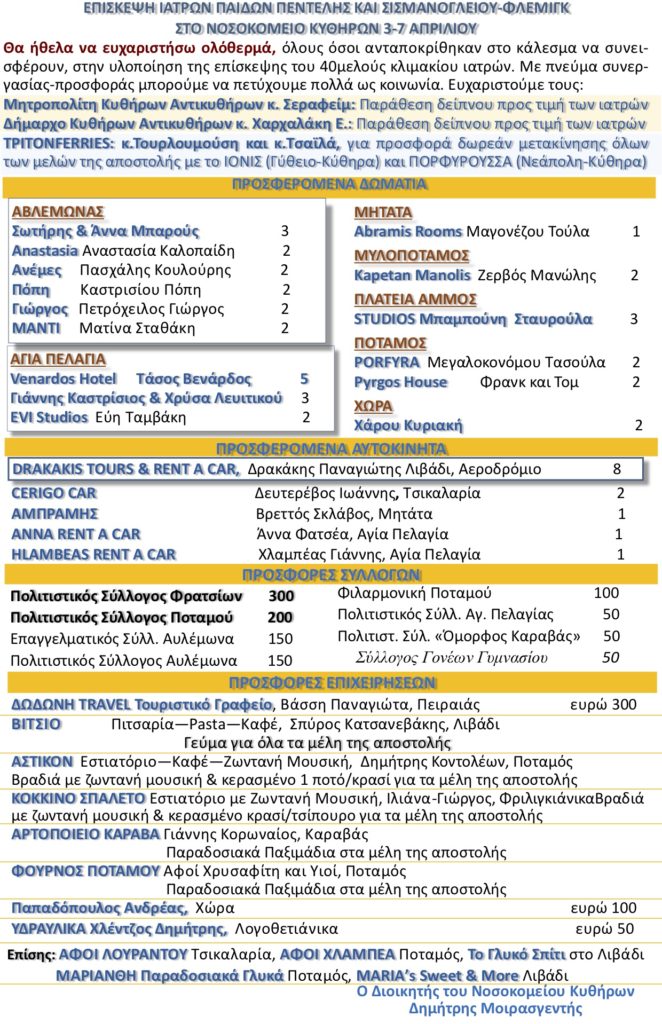 Χορηγοί Επίσκεψης Ιατρών Παίδω Πεντέλης και Σισμανογλείου-Φλέμιγκ