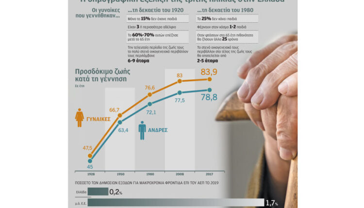 Η εικόνα του παππού και της γιαγιάς που λένε παραμύθια στα παιδιά μπροστά στο τζάκι, σε λίγο θα έχει μουσειακή αξία. Το μαξιλάρι ασφαλείας που λέγεται «οικογένεια», η οποία παραδοσιακά στην Ελλάδα αναλάμβανε να φροντίσει τους ηλικιωμένους, όταν πλέον δεν μπορούσαν να ζήσουν αυτόνομα, θα μπορεί όλο και λιγότερο τα επόμενα χρόνια να επιτελέσει αυτόν τον ρόλο, λόγω των δημογραφικών εξελίξεων. Ταυτόχρονα ο αριθμός των ηλικιωμένων ανθρώπων στη χώρα αλλά και σε ολόκληρη την Ευρώπη, σε σχέση με τον γενικό πληθυσμό, θα συνεχίσει να αυξάνεται τα επόμενα χρόνια ως αποτέλεσμα της αύξησης του μέσου όρου ζωής αλλά και της υπογονιμότητας. Σήμερα οι άνω των 80 στην Ελλάδα είναι 775.704, ενώ το 22,6% του πληθυσμού είναι άνω των 65 ετών. «Το κράτος πρόνοιας θα κληθεί να καλύψει τις ανάγκες των ηλικιωμένων δεδομένου ότι η “στενή οικογένεια” για πολλούς δεν θα υπάρχει, ενώ και οι απολαβές των ηλικιωμένων δεν θα μπορούν να καλύψουν ιδιωτικά τις αυξημένες ανάγκες τους», τονίζει ο Βύρων Κοτζαμάνης, καθηγητής Δημογραφίας.