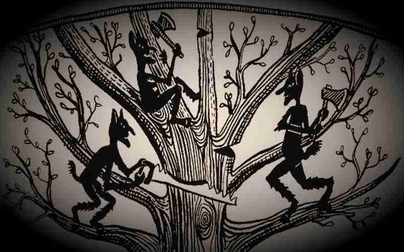Εκεί ρίχνουνται πάλι με μανία στο Δέντρο της Γης, όμως σ’ αυτό το αναμεταξύ έθρεψε και θέριεψε πάλι ο κορμός του από τη Χάρη του Θεού που όλα τα ζυγιάζει, τα συνταιριάζει και τα ισορροπεί!».