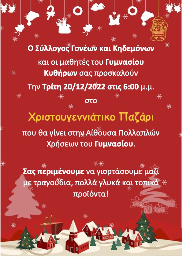 - Χριστουγεννιάτικο παζάρι Γυμνασίου Κυθήρων